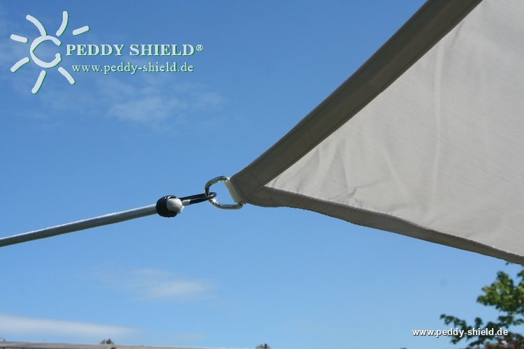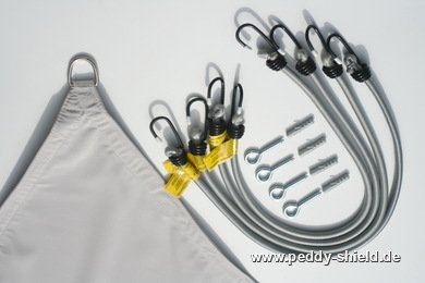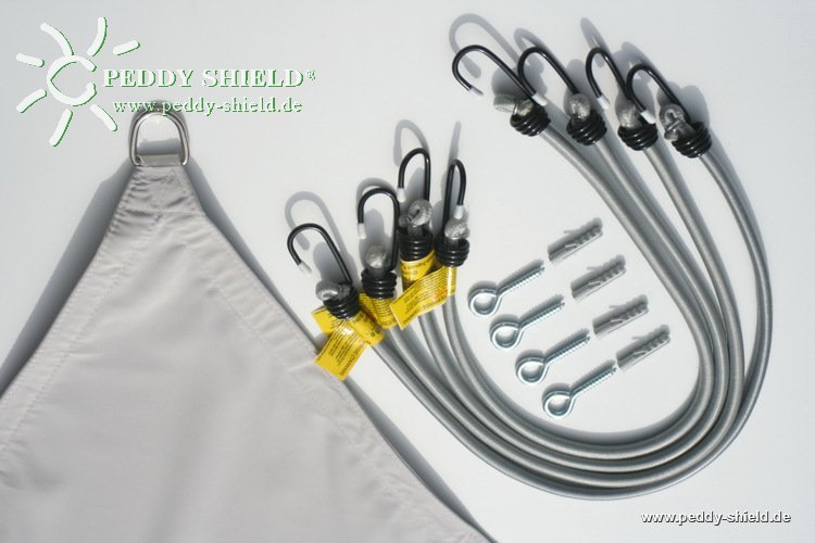 Toldo de sol / vela rectangular 2,5x3 m – impregnado contra agua – con anillos metálicos de acero inox en cada canto - con 4x tensores elásticos (70 cm – 100 cm) - 4x tornillos con anillos de acero inox – en mala transparente.